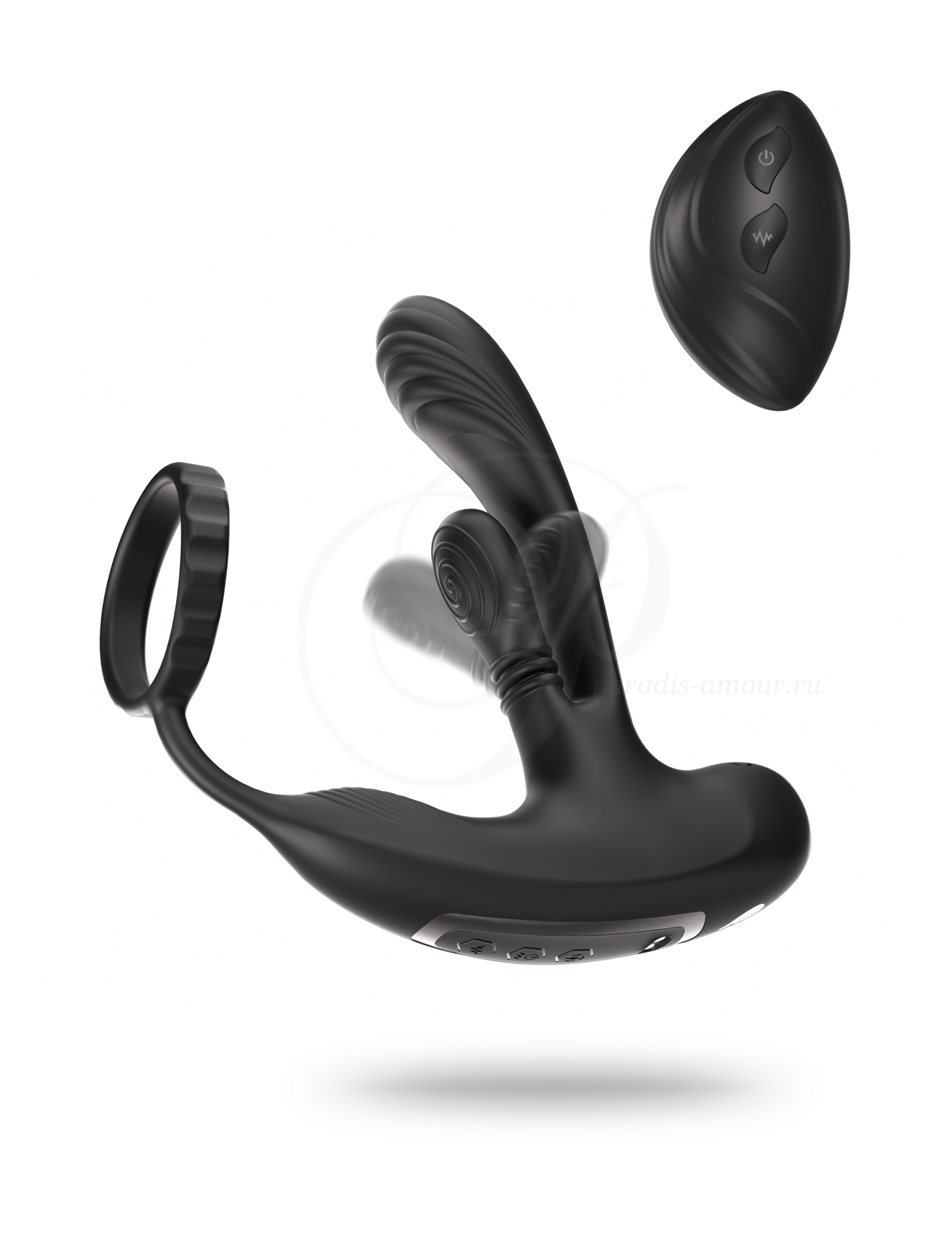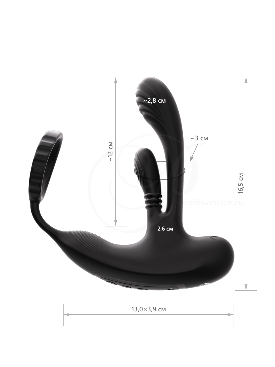 Дополнительный мотор в основании отвечает за стимуляцию промежности. - Эластичное кольцо на пенис усиливает эрекцию и замедляет эякуляцию за счет ограничения оттока крови (надевается в основание члена до или после мошонки).