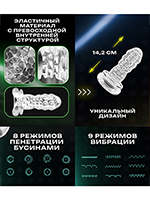 Пенетрация осуществляется тремя полукольцами бусин, которые двигаются вверх-вниз по стволу, стимулируя пенис по всей длине. - 8 программ движения бусин, 9 режимов вибрации.