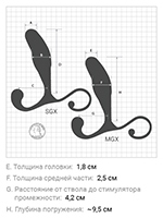 максимальная толщина головки 2,0 см максимальная толщина средней части 2,5 см длина активной части (глубина погружения) 9,5 см полная длина 13,0 см толщина рельефной «ножки» 0,9 см длина основания 11,0 см вес 37 г