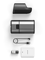 Футляр для подзарядки, просушки и хранения, зарядный кабель USB, пробник лубриканта Arcwave by Pjur (10 мл), сменный стик для просушки DryTech, инструкция.