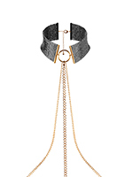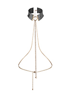 - Состоит из ошейника-чокера и трех цепочек, которые фиксируются к кольцу на ошейнике и соединяются между собой, цепочка оборачивается вокруг талии.