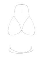 - Изысканная металлическая цепочка на тело, подчеркивающая контуры груди.