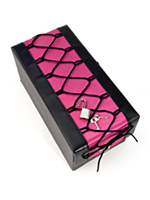 - Ящик обшит высококачественной искусственной кожей, крышка декорирована корсетной шнуровкой.
