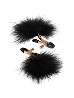 - Зажимы декорированы натуральными пушистыми перьями, которые можно использовать в качестве щекоталки в любовных играх.