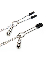 - Регулируемые зажимы на соски цепочками присоединяются к колечку на ленте с помощью карабинчиков. Сила сжатия регулируется от деликатной до сильной.