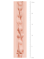 - Спиралевидным образом скрученный канал с переменной толщиной (12‑20 мм) и периодическим рисунком, который обеспечивает очень «натуральные» ощущения, сравнимые с ощущениями при реальном анальном сексе и ярко выраженный всасывающий эффект.