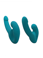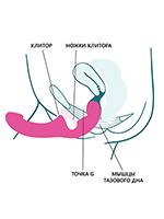 - Укороченный конец комфортно удерживается вагинальными мышцами или рукой. В первом случае специальная форма и изгиб вагинального «яичка» обеспечивают прямое давление на зону G, усиливая удовольствие женщины в активной позиции. Чтобы удерживать игрушку внутри было еще проще, можно использовать трусики-харнес.