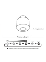 - Легко управляется единственной кнопкой в основании: длительное нажатие включает/выключает вибрацию, короткое нажатие последовательно переключает режимы.