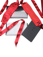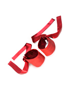 - Две манжеты из мягкой натуральной замши и шелка с красивым жаккардовым рисунком LELO + две шелковые ленты (длина каждой ~100 см); ленты продеваются в замшевые манжеты, образуя любовные наручники, или могут использоваться отдельно.