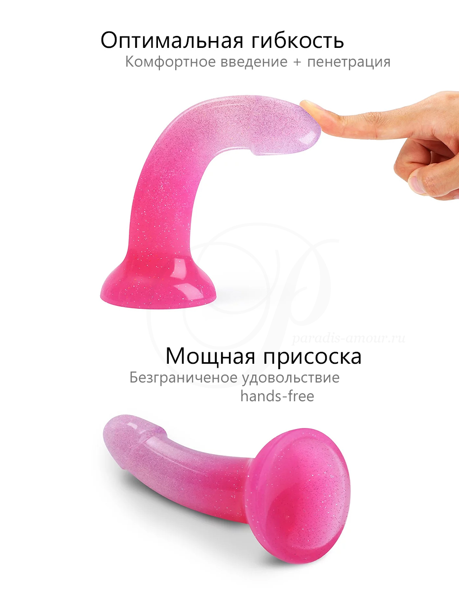 - Продуманная форма с легким изгибом и выраженной головкой — подходит для активной пенетрации и для прямой стимуляции точки G и простаты.
