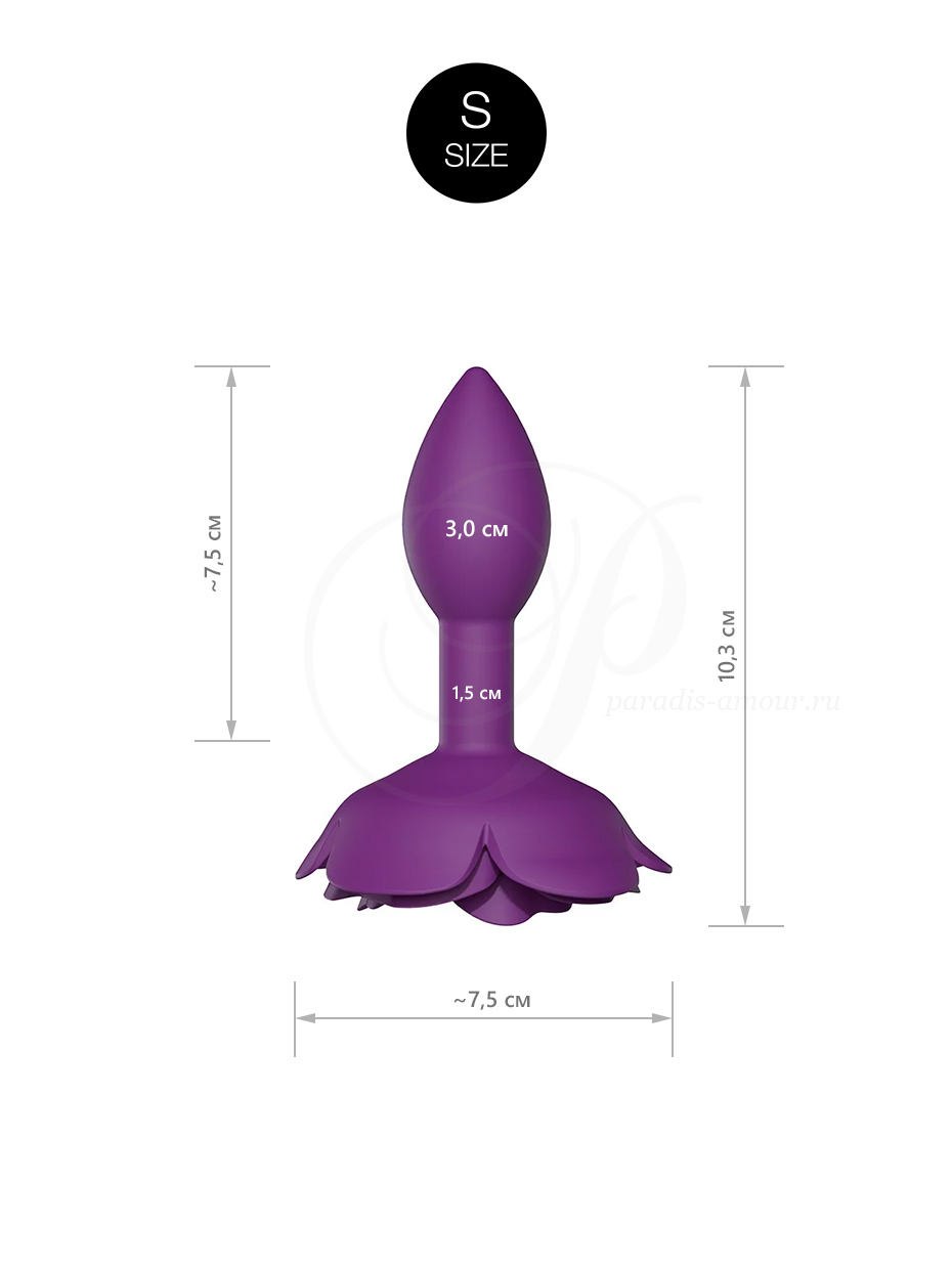 - Дизайнерская анальная пробка с пышной силиконовой розой в основании.