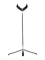 - Украшение состоит из трех частей, которые можно разъединить (соединяются между собой миниатюрными карабинчиками) и использовать по отдельности: ошейника, пояса на талию и соединительной цепочки.