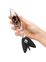 Секс, Bomber, рок-н-ролл! Небольшой, но очень эффектный стимулятор-дилдо из закаленного боросиликатного стекла имеет два рабочих конца — удлиненный с плавно изменяющейся толщиной для самого универсального секс использования и каплевидный для интенсивной стимуляции, например, точки G. В комплект входит силиконовая подставка, с помощью которой Bomber удобно держать рукой (особенно актуально при большом количестве смазки) или даже превратить его в удивительный арт-объект.