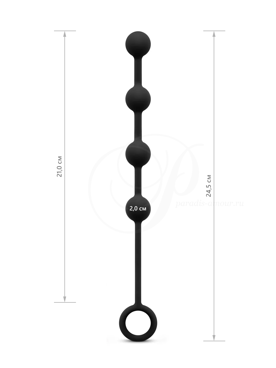 - Анальная цепочка: полная длина 24,5 см, диаметр секций 2,0 см, расстояние между секциями 2,0 см, толщина «шнура» 0,5 см, вес 28 г.