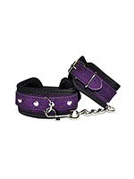 - Фиксации на руки и на ноги (наручники + наножники). Оснащены D‑образными кольцами и карабинами для соединения между собой и с другими аксессуарами. Фиксируются на пряжку, подходят на любой размер (обхват запястья 16–29 см, обхват лодыжки 19–32 cм) — 6 отверстий для регулировки размера. Размеры полотна наручников 23,0×4,5 см, наножников — 26,5×4,5 см. Ширина фиксирующих ремешков ~2 см.