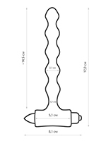 - Комплект из силиконовой насадки в виде анальной цепочки из 5 секций (2,1 см) и миниатюрного вибратора‑пули, который вставляется в основание насадки и превращает ее в анальную вибропробку.