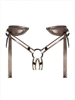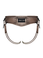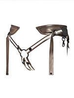 - Представляет собой мягкий полупояс (задняя часть) с системой ремней для подгонки по размеру и кольцом под дилдо (передняя часть).