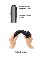 - Революционная технология двойной плотности Sliding Skin («подвижная кожа»): твердый и упругий внутренний сердечник ствола покрыт толстым слоем нежнейшего силикона. При проникновении или стимуляции внешний слой смещается по стволу, обеспечивая непередаваемый ультрареалистичный эффект.
