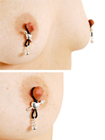 - Красивые подвески на соски в виде сердечек, пронизанных стрелой с подвеской-шариком.