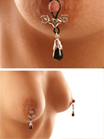 - Красивые подвески-капельки на соски с зажимами в виде трилистника.