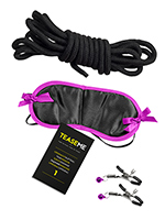 - Игра для любовных пар в «Силу и Подчинение»: три любовных аксессуара + 6 карточек с заданиями.