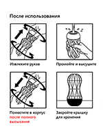 После использования мастурбатора вытащите и выверните наизнанку рукав, промойте его обычной водой с мягким мылом, аккуратно просушите полотенцем и выверните обратно (чтобы избежать растяжения структуры). Убирайте игрушку на хранение только после полного высыхания! -