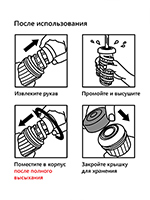 * Перед извлечением рукава верните поворотную крышку в начальное положение (поворачивайте крышку против часовой стрелки). - Материал рабочей части (рукава): термопластичный эластомер (TPE) — мягкий, экстраприятный и абсолютно безопасный.