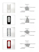 - Три больших кнопки позволяют одной рукой изменять характер стимуляции: нажатие средней кнопки увеличивает давление по всей длине и усиливает сосущий эффект, нижняя кнопка делает вход более тугим и более яркими ощущения при введении, верхняя кнопка — усиливает стимуляцию головки.