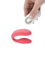 - Дистанционный вибратор для пар We-Vibe Unite — классический U‑образный вибратор, который можно использовать непосредственно во время полового акта. Одним (более тонким) концом вибратор вставляется во влагалище, а другой остается снаружи и обеспечивает дополнительную стимуляцию клитора. Управлять вибрацией (10 режимов) можно с помощью входящего в комплект дистанционного пульта.