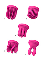 - В комплект входят 5 сменных насадок, обеспечивающих разный характер и интенсивность стимуляции. Поэкспериментируйте с воздействием разных насадок на разные эрогенные зоны, чтобы подобрать наиболее приятный для себя вид стимуляции.