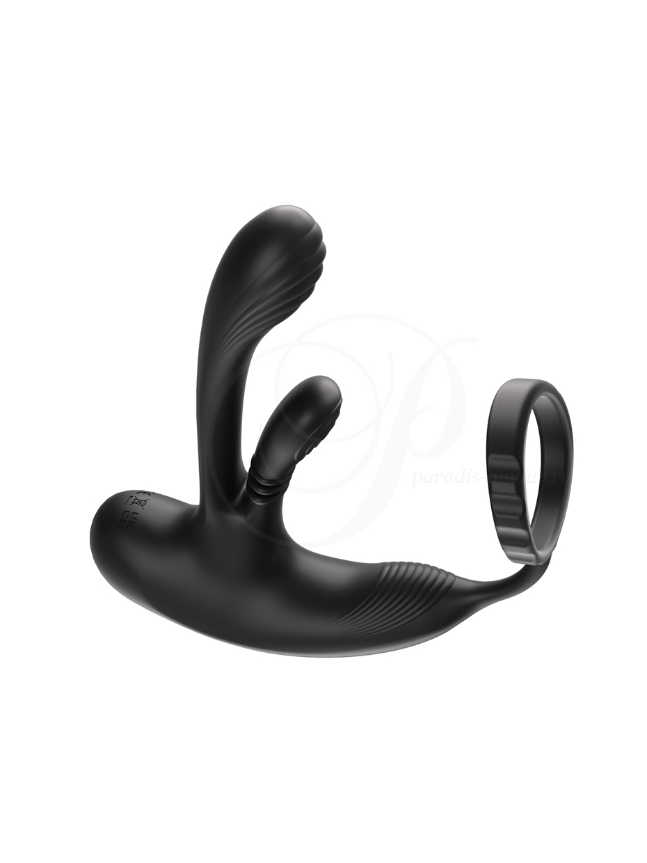 Дополнительный мотор в основании отвечает за стимуляцию промежности. - Эластичное кольцо на пенис усиливает эрекцию и замедляет эякуляцию за счет ограничения оттока крови (надевается в основание члена до или после мошонки).