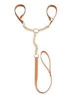 - В комплект входят два соединенных цепочкой наручника-браслета и съемный поводок (фиксируется на карабинчик).