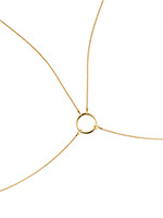 - Длинная тонкая металлическая цепочка на тело, подчеркивающая контуры груди.