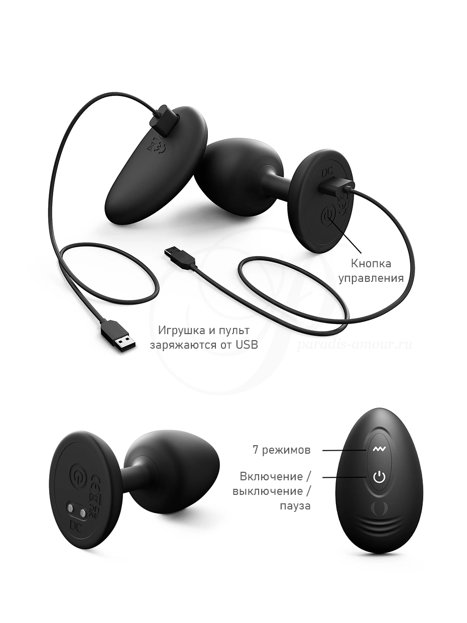 Управляется кнопкой в основании или с пульта. - 100% чистый медицинский силикон.