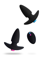 - В комплект входят две полностью одинаковых анальных пробки унисекс (между собой отличаются только цветом кнопки) + миниатюрный дистанционный пульт.