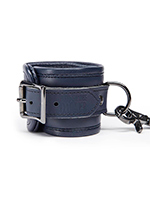 - Прочный кожаный соединитель надежно фиксируется с помощью карабинов на D-образные кольца на наручниках.