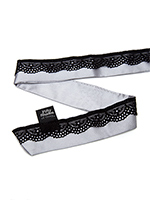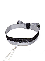 - Длинная атласная лента 110×3 см — завязывается на шее в виде ошейника. Отделана изящным черным кружевом.