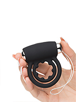 - Двойное эрекционное кольцо со съемной вибропулей: рельефное кольцо меньшего диаметра надевается в основание члена до мошонки, большего диаметра — за мошонку (кольца можно и не разделять, надевая оба кольца до мошонки). За счет плотного обхвата кольцо ограничивает отток крови из члена, усиливая и продлевая эрекцию и задерживая семяизвержение.