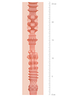 - В средней части канала (~12 см от входа) расположена узкая камера, которая делит канал на две половины. В первой рельеф (и характер стимуляции) меняется стремительно, позволяя испытать самую широкую гамму ощущений. Вторая половина (доступная для мужчин с длиной члена от 15 см) обеспечивает максимально интенсивные ощущения за счет более крупных и отчетливых деталей.