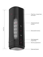 Интенсивность стимуляции регулируется с помощью специальной сенсорной полосы на верхней поверхности мастурбатора (управлять удобно даже одним пальцем). Движения пальца по сенсорной полосе последовательно активирует стимулирующие полукольца. Чем интенсивнее движения, тем быстрее двигаются полукольца и тем интенсивнее стимуляция. - «Автоматический» режим (постоянное фиолетовое свечение индикатора):