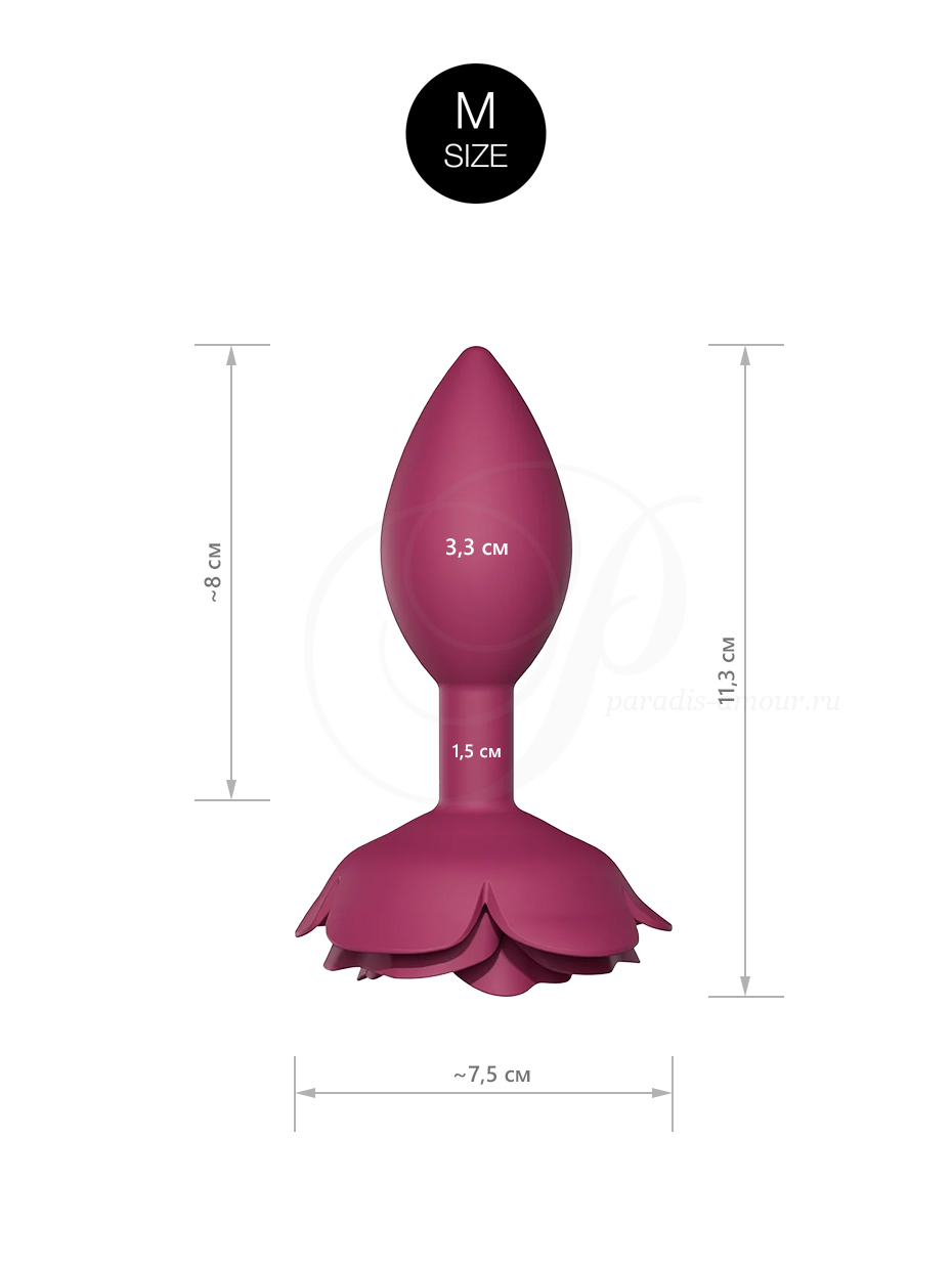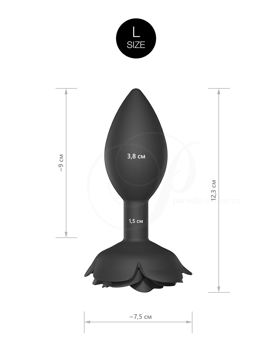 - Дизайнерская анальная пробка с пышной силиконовой розой в основании.
