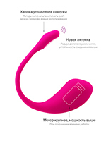 - Второе поколение самого популярного смарт‑вибратора: повышена устойчивость соединения, кнопка управления перенесена на конец хвостика-антенны, моторчик еще мощнее.