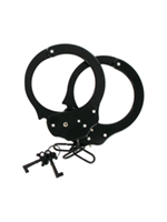 - Легкие металлические наручники. Соединенные короткой цепью. Оснащены замком (ключи в комплекте).