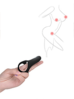 Для использования в режиме эрекционного кольца суперэластичная силиконовая оболочка надевается в основание члена (с захватом мошонки или без — см. рисунок в карусели). За счет плотного обхвата кольцо ограничивает отток крови из пениса, делая эрекцию более сильной и стабильной. Вибропуля обеспечивает дополнительную стимуляцию клитора партнерши.