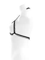 - Бюстгальтер из узких кружевных тесемочек с открытой грудью.