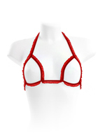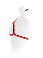 - Бюстгальтер из узких кружевных тесемочек с открытой грудью.