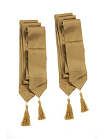 - Две ленты из нежного атласа с пушистыми кисточками на концах.