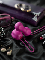 - Внутри шариков спрятаны тяжелые грузики, которые при движении создают эффект смещённого центра, обеспечивая максимально эффективное воздействие на вагинальные мышцы.