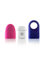- В набор входит вибратор-моторчик и две силиконовые насадки: миниатюрная насадка для клиторальной стимуляции (розовая) и насадка‑кольцо (синяя), которая может использоваться в качестве эрекционного кольца или как мини‑вибратор для стимуляции клитора и других эрогенных зон.