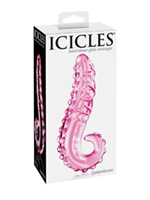 Особым образом изогнутый и впечатляюще рельефный Icicles 24, похожий одновременно на щупальца осьминога и на язык неведомого сладострастного зверя, хорошо подходит как для вагинальной, так и для анальной стимуляции. Одна его сторона покрыта круглыми бугорками в два ряда, другая — менее рельефными поперечными «венами». Удобное полукольцо на конце служит как ручка с дополнительной стимуляцией клитора и как ограничитель при анальном использовании.